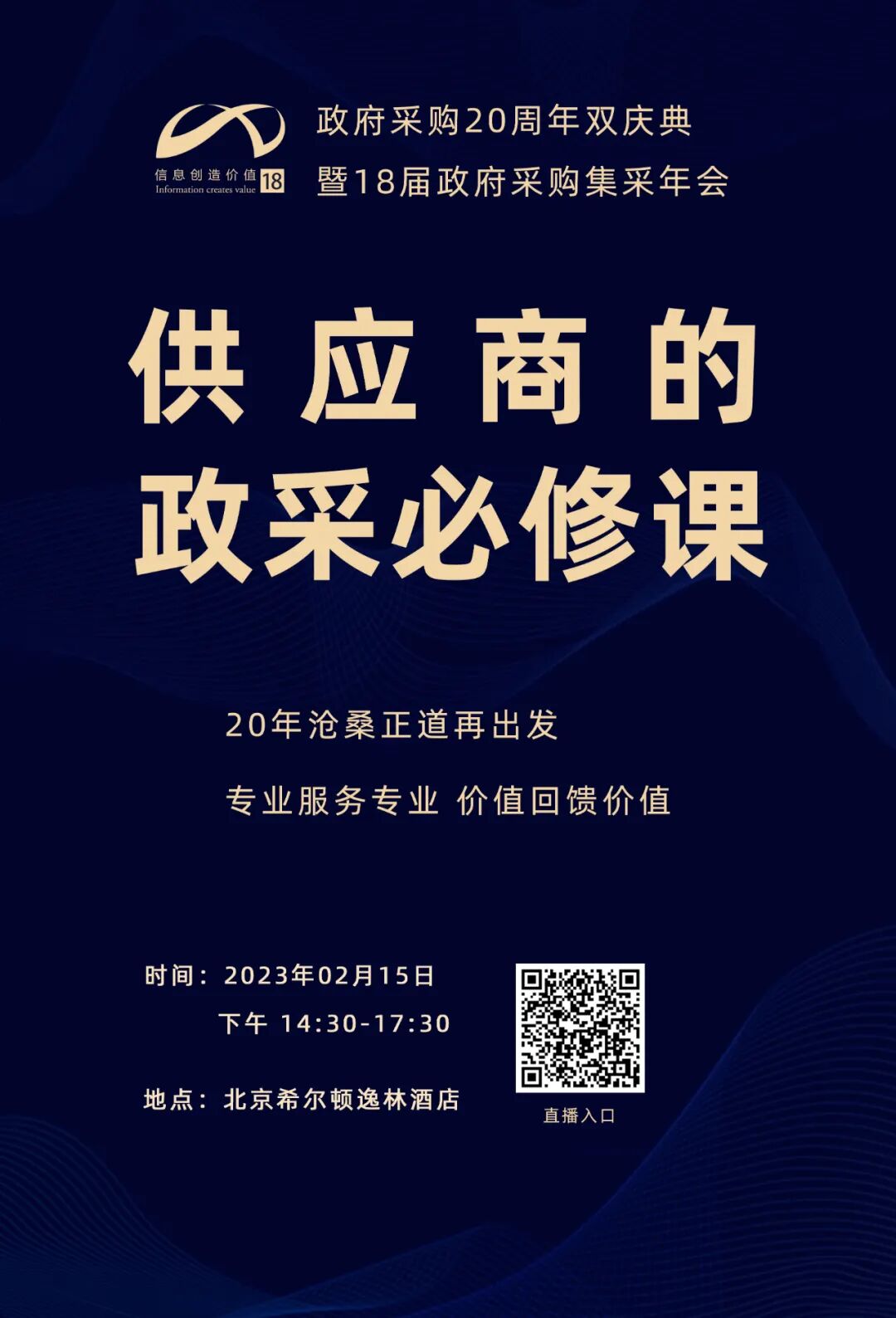 2月15日下午15:00,政府采购20周年双庆典暨18届政府采购集采年会现场,专为参会供应商准备的法规与实务研修班,将现场直播等着你来互动提问!