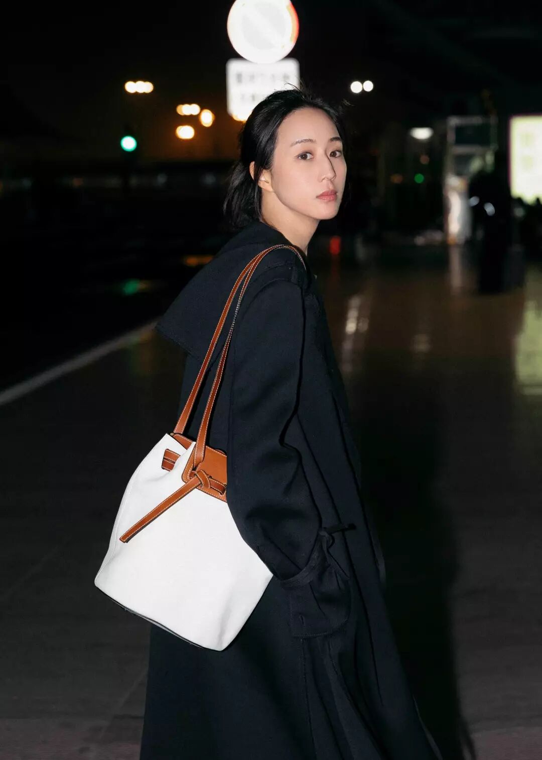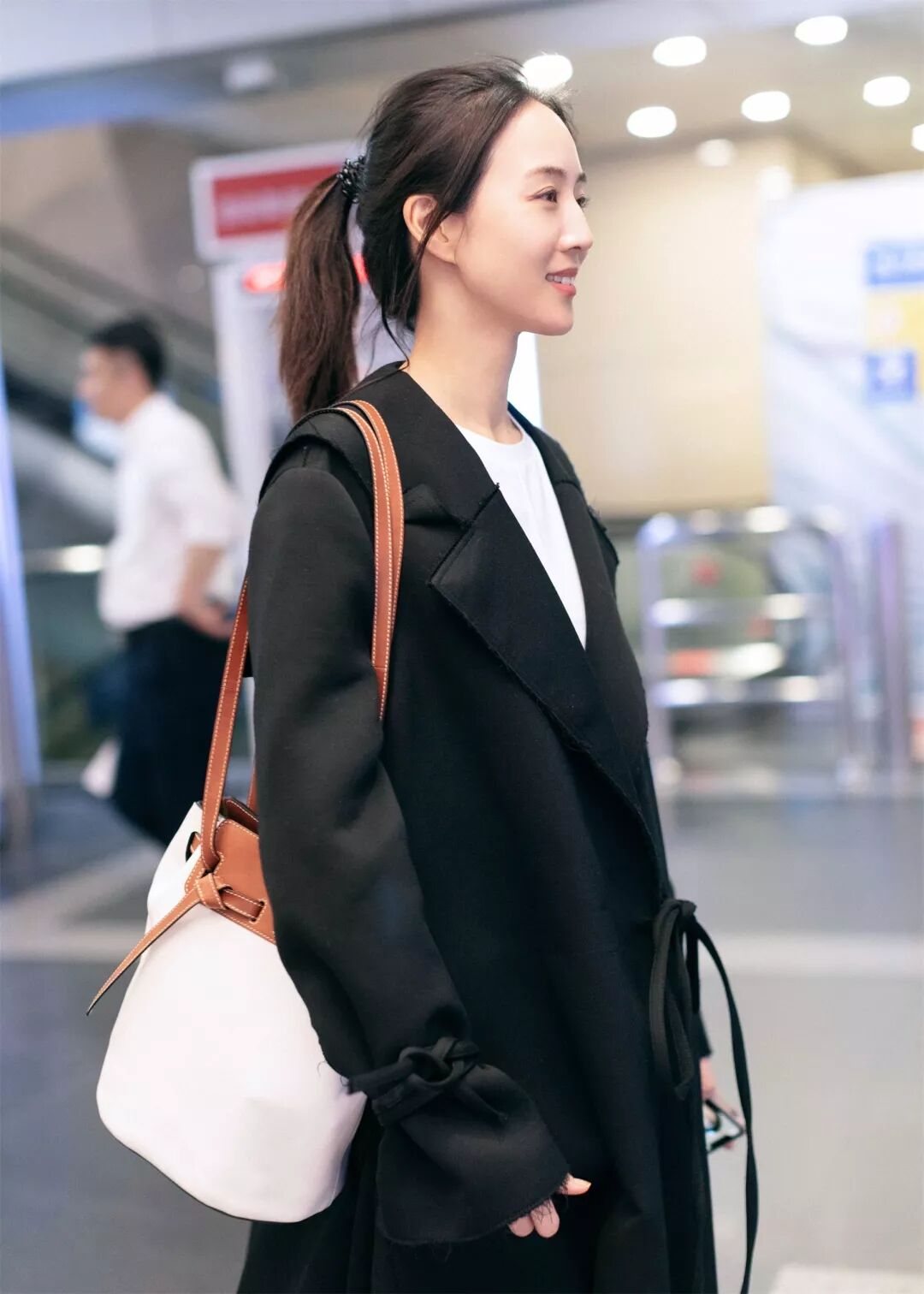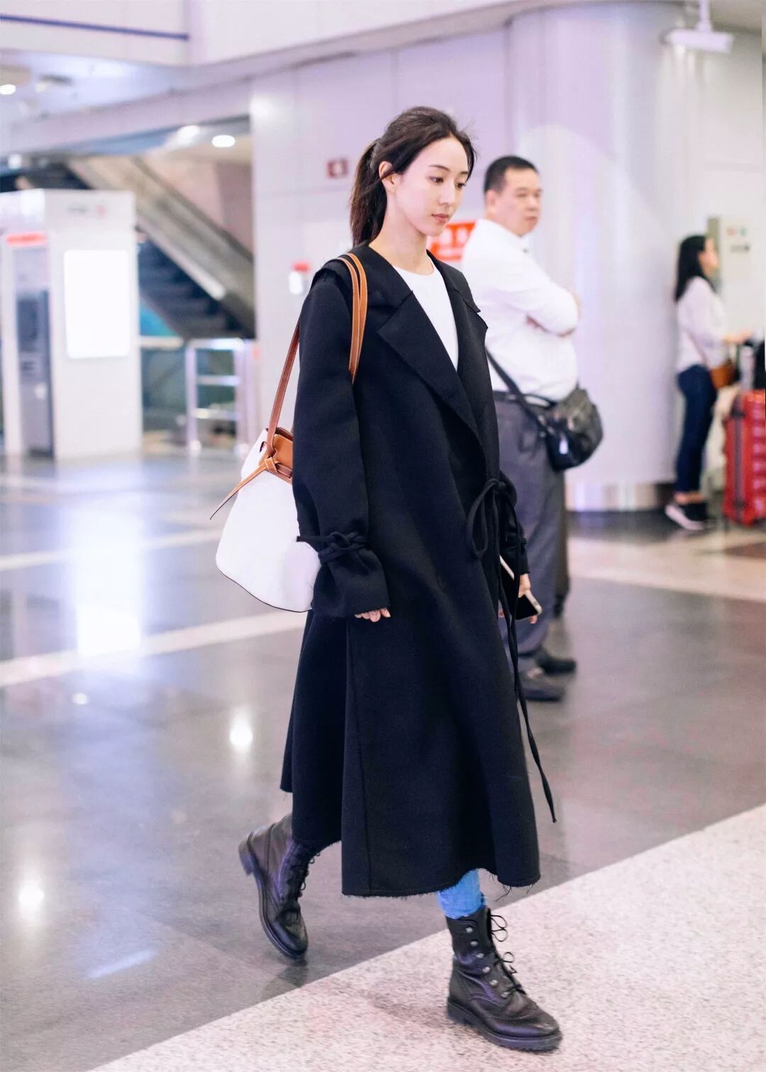 张钧甯近日还素颜现身首都机场,长款黑色连帽风衣搭配马丁靴,潇洒满分。