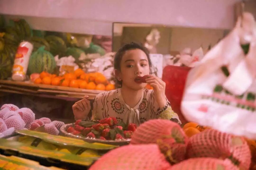 在活动之外,李梦还在水果店拍摄了一组写真。照片中,她拿着西瓜、草莓,烟火气息浓厚。
