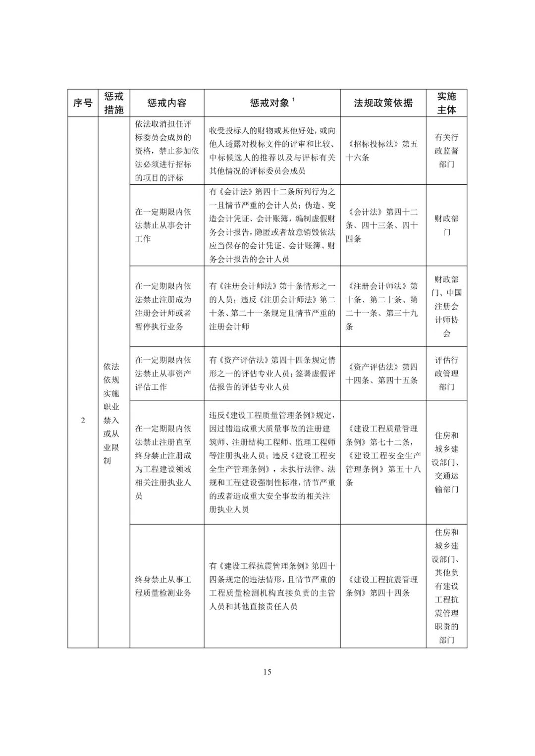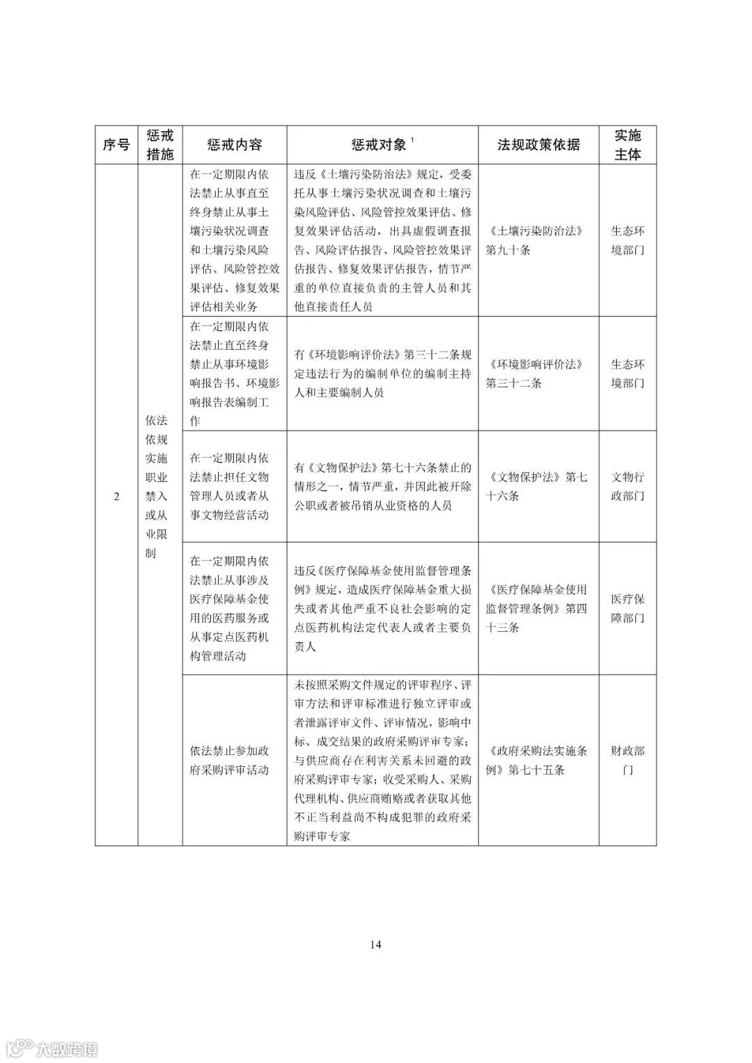 《2022版失信惩戒清单》所列失信惩戒措施包括三类,共14项:一是由公共管理机构依法依规实施的减损信用主体权益或增加其义务的措施,包括限制市场或行业准入、限制任职、限制消费、限制出境、限制升学复学等;二是由公共管理机构根据履职需要实施的相关管理措施,不涉及减损信用主体权益或增加其义务,包括限制申请财政性资金项目、限制参加评先评优、限制享受优惠政策和便利措施、纳入重点监管范围等;三是由公共管理机构以外的组织自主实施的措施,包括纳入市场化征信或评级报告、从严审慎授信等。