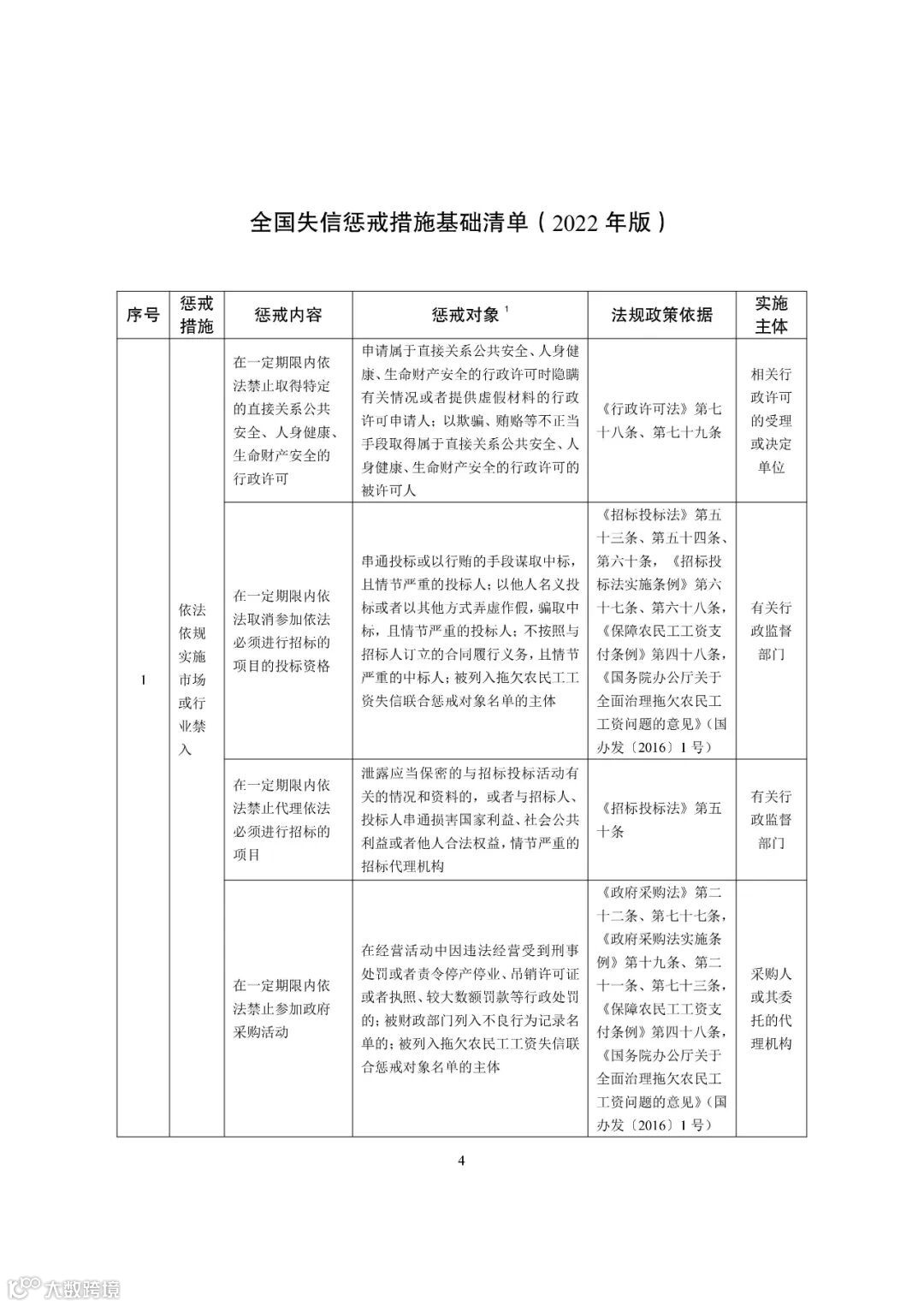 《2022版失信惩戒清单》列明了在政府采购活动中会被处罚的几种失信行为,各政采当事人需关注这几类情况。
