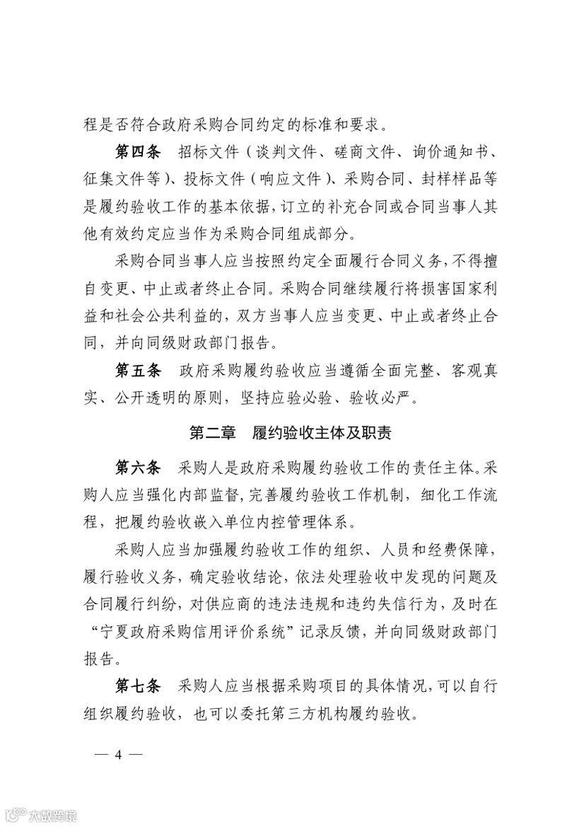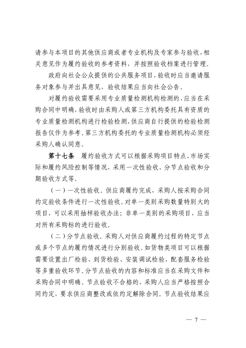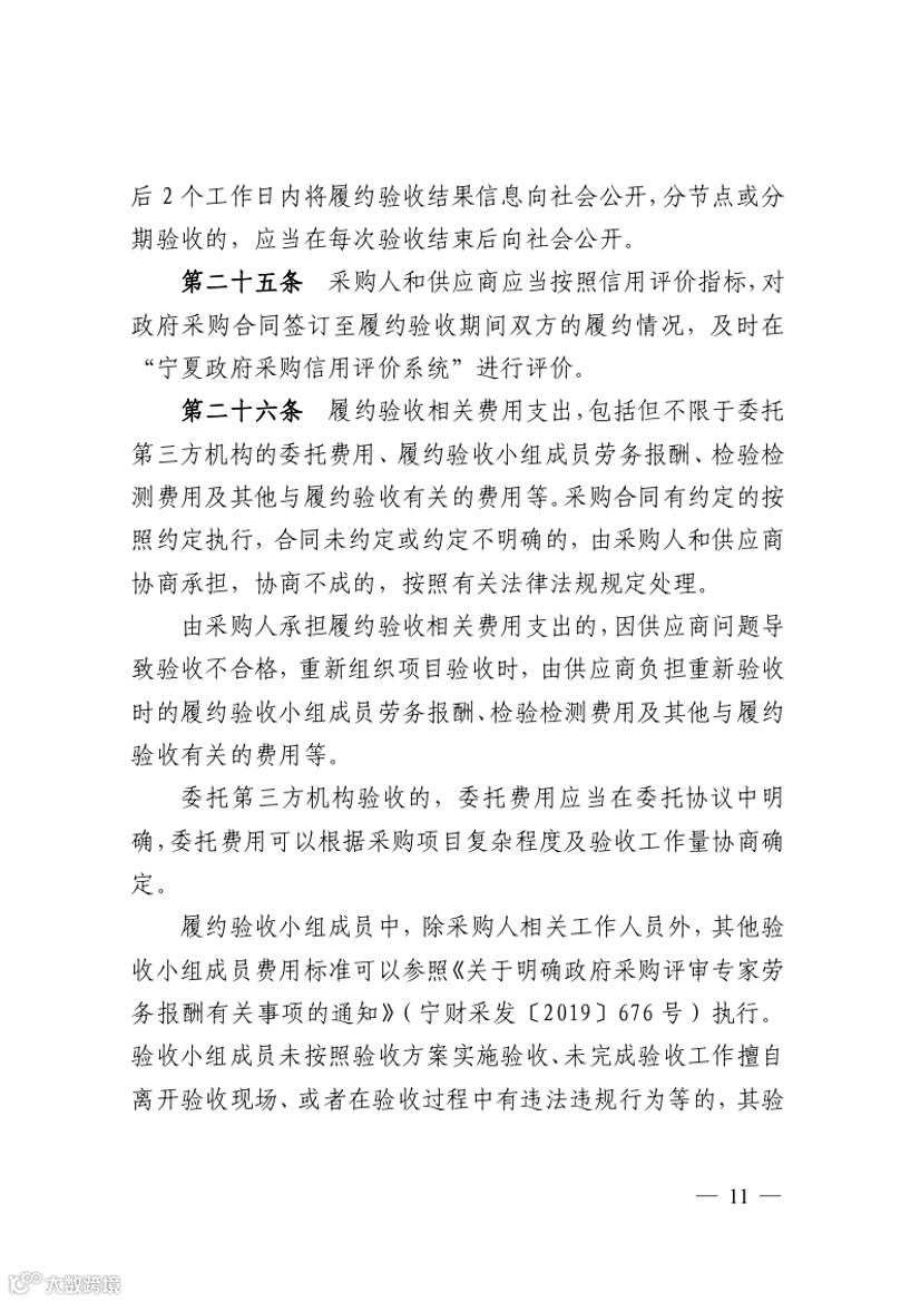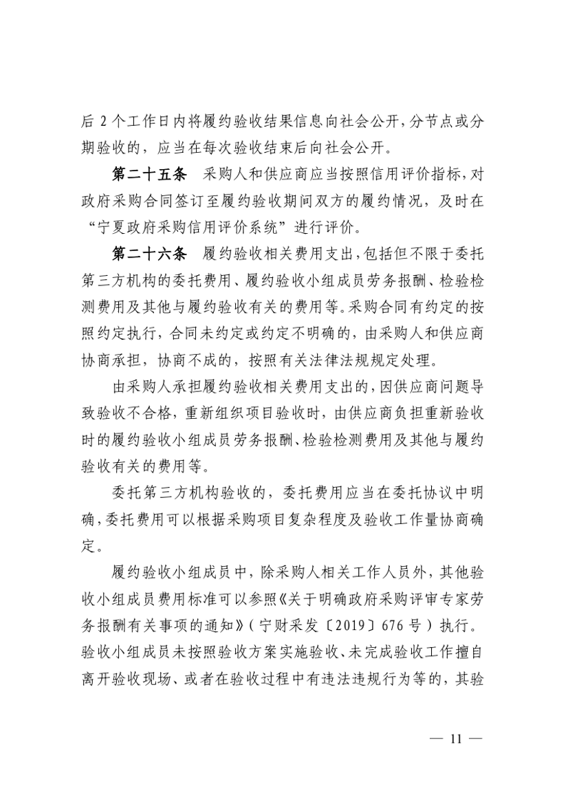 宁夏回族自治区财政厅日前印发了《关于印发<宁夏回族自治区政府采购履约验收管理暂行办法>的通知》(宁财规发〔2022〕10号,以下简称《通知》)。指出,宁夏财政厅研究制定了《宁夏回族自治区政府采购履约验收管理暂行办法》(以下简称《办法》),《办法》自2022年9月1日起施行,有效期至2024年8月31日。《关于印发<宁夏回族自治区本级政府采购项目验收管理办法>的通知》(宁财采发〔2014〕686号)同时废止。