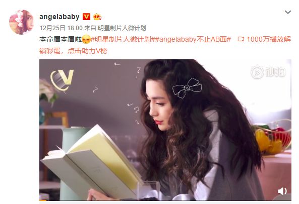 明星制片人《angelababy不止AB面》第五期“眉妆教程”已于本周二(12月25日)18:00精彩上线,baby美妆课堂再次营业!在熟悉的粉红色空间里,baby向老朋友春楠老师,提出关于自己眉毛的困惑后,两人携手打造精致本命眉,为粉丝送上福利。