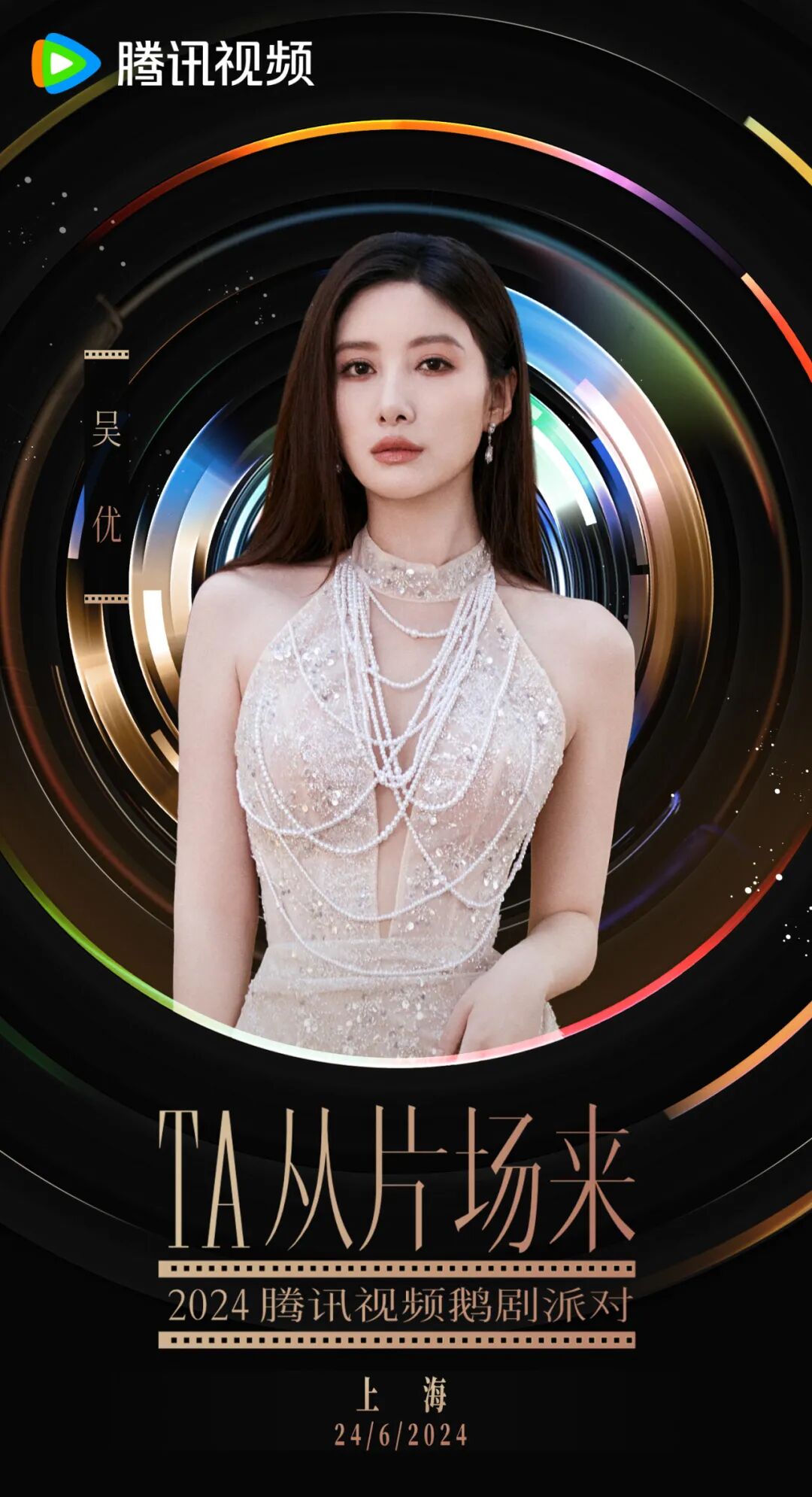 本周一,吴优官宣参加2024腾讯视频鹅厂派对。潜心塑造,回归本真。“她”从片场归来,见证剧集魅力。