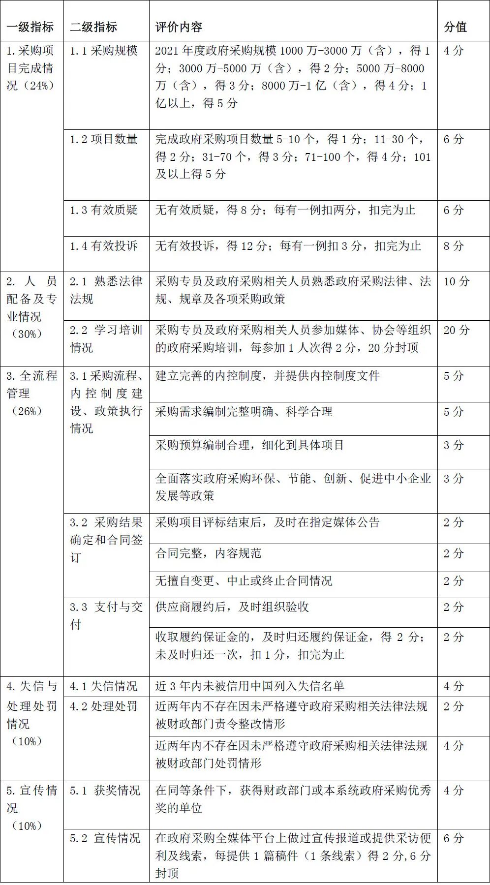 二、2021年度政府采购先进采购人•高校•医院评价指标