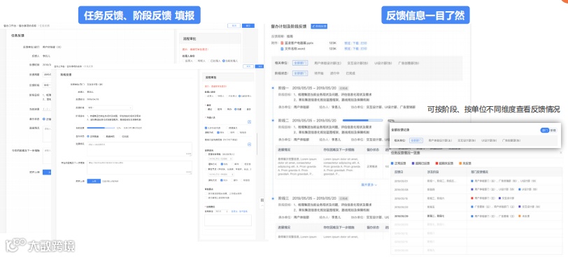 在督办任务中增加“反馈周期”元素,按任务反馈、阶段反馈双维度反馈机制,可按阶段、按单位不同维度查看反馈情况。