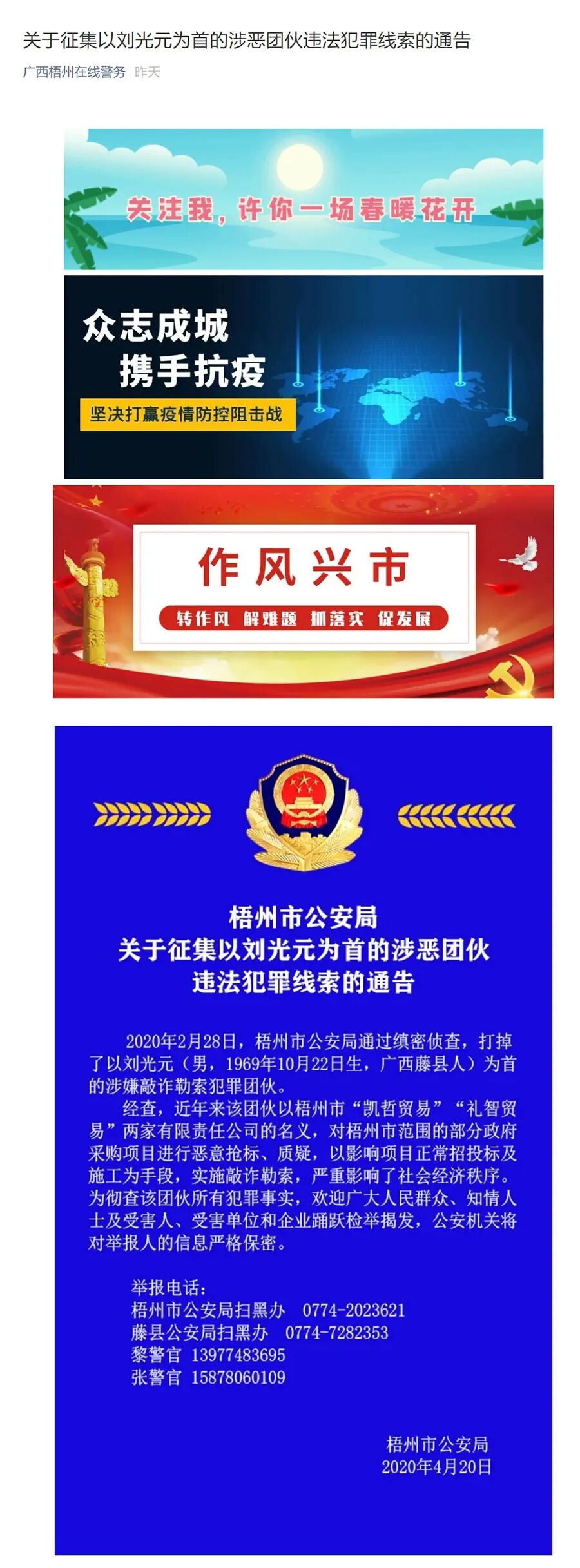 据广西梧州在线警务微信公众号通报:近期,犯罪嫌疑人刘某等人利用政府采购的有关规定,在互联网寻找政府采购竞标项目,随机挑选中标单位后,将质疑函邮寄到中标单位、业主单位以及有关职能部门进行恶意投诉,导致中标单位不能按期施工,后敲诈中标单位网上支付“好处费”,才撤回质疑函,累计非法获利达11万余元。2020年2月27日,藤县公安局侦查掌握了该犯罪团伙作案规律,分别在梧州市长洲区、蒙山县抓获3名犯罪嫌疑人。目前,藤县人民检察院已对其3人批准逮捕。