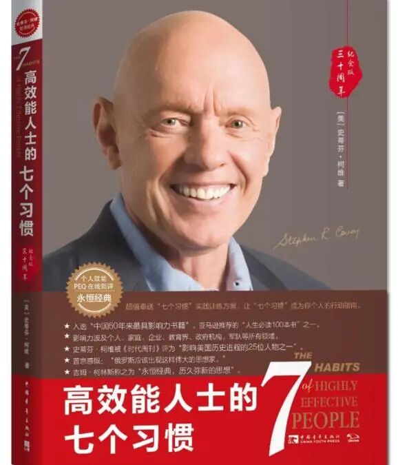 美国著名管理学大师史蒂芬·柯维的《高效能人士的七个习惯》是福布斯“有史以来最具影响力的10大管理类书籍之一”。