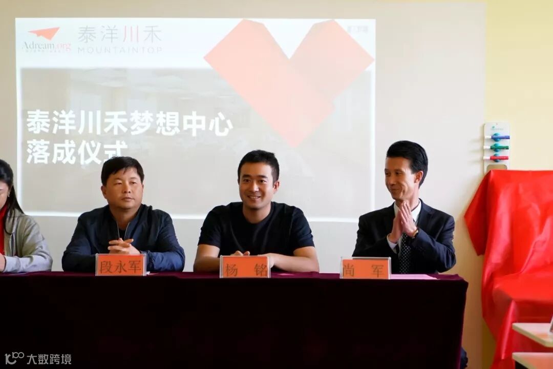 泰洋川禾成立三周年之际,杨铭决定以公益的方式庆生:向真爱梦想捐赠善款40万元,为偏远地区的儿童搭建三所梦想中心。第一间梦想中心在中宁县第十小学落成。