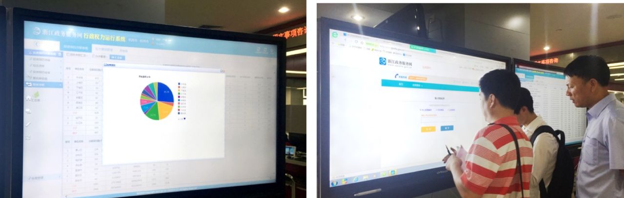 比如,在以往很多开标室内至少需要各配置一个麦克风,一个投影仪+幕布,一台电视和时间显示器等设备,种类繁多、操作流程复杂。而设备一体化、操作智能化的电子政务会议平台,就包含了无线投屏显示,智能书写等所有功能。