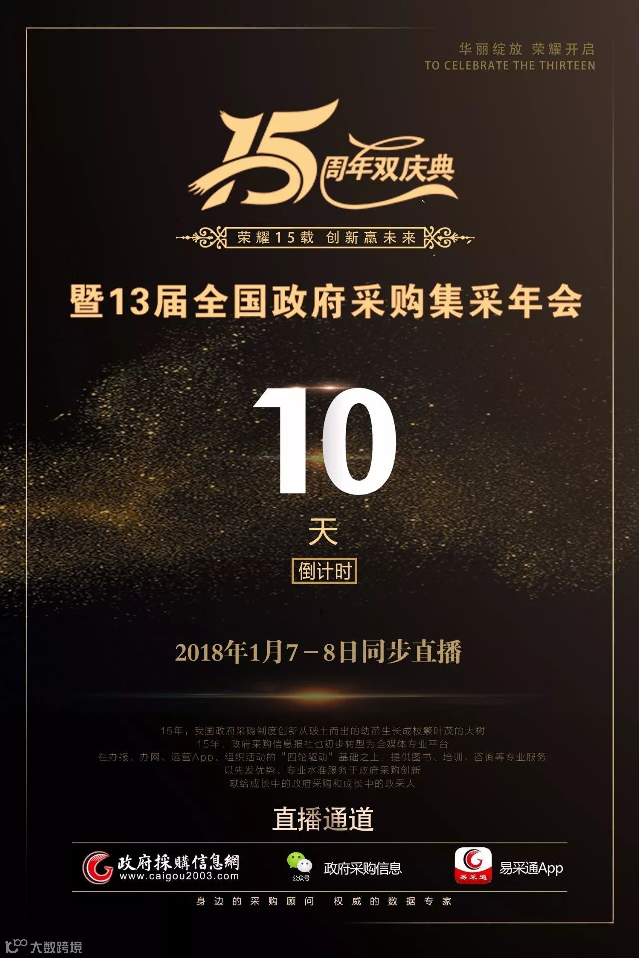 2018年1月1日,《政府采购法》正式实施15周年,同时也是政府采购信息报/网的15周年华诞。在“双15”即将来临之际,政府采购信息报/网将于2018年1月6日-8日在北京隆重召开“15周年双庆典暨13届全国政府采购集采年会”。