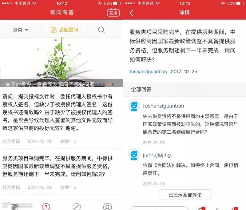 自易采通APP上线以来,“有问有答”频道就受到各方政府采购人士的喜爱,短短10个月时间,“有问有答”频道已收集了3500多个政府采购一线人士遇到的疑难问题及专家同行给出的解决方案。