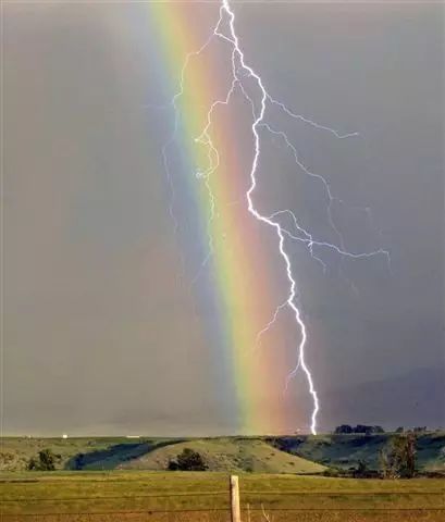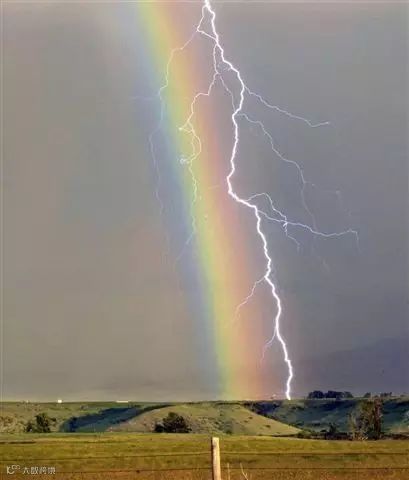神奇!闪电和彩虹竟然同时出现,两者并列,更增添了一分特殊的美感。