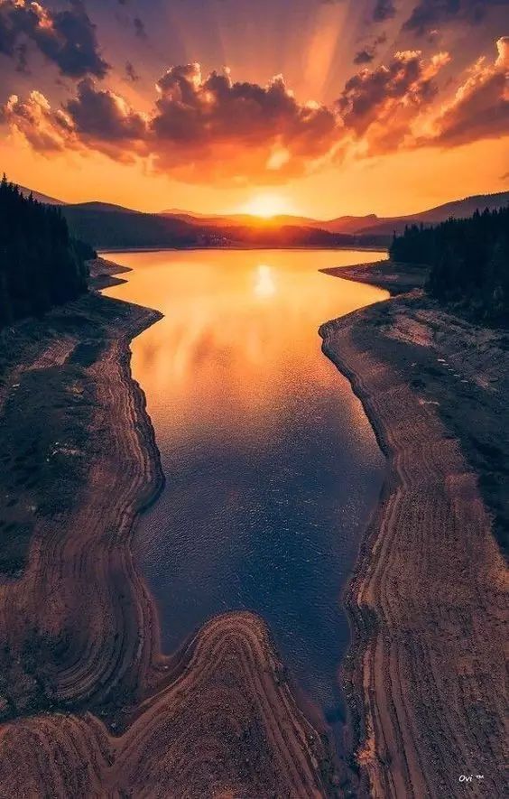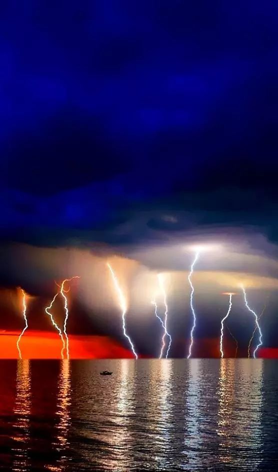 落日与闪电一起出现在海上,是天神与海神的对决?