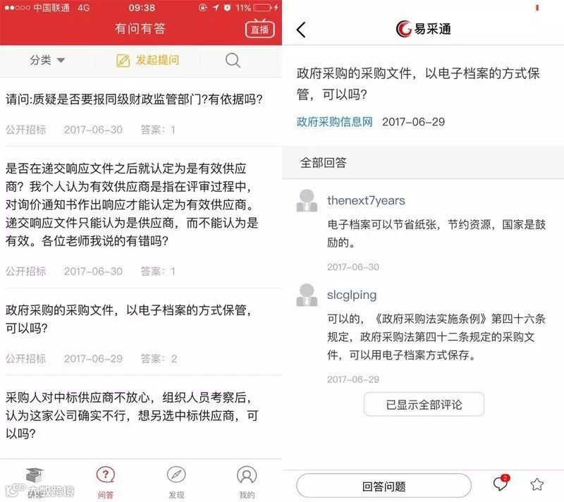 自易采通APP上线以来,“有问有答”频道就受到各方政府采购人士的喜爱,短短6个月时间,“有问有答”频道已收集了近千个政府采购一线人士遇到的疑难问题及专家同行给出的解决方案。