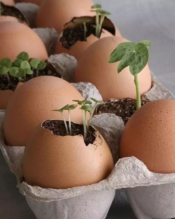 鸡蛋壳中的钙和磷都是植物最爱的肥料,植物吸收了它,只会越长越好~