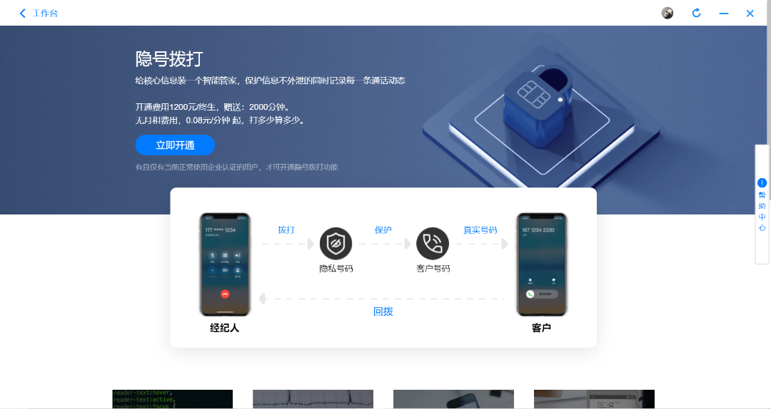 而隐号拨打,通过借助智能隐号、通话录音技术有效解决了经纪人业务拨打时的问题。智能隐号,有效防护客户号码,避免抢单;通话录音,利于业务复盘、规范服务,还能为电话跟进提供依据。