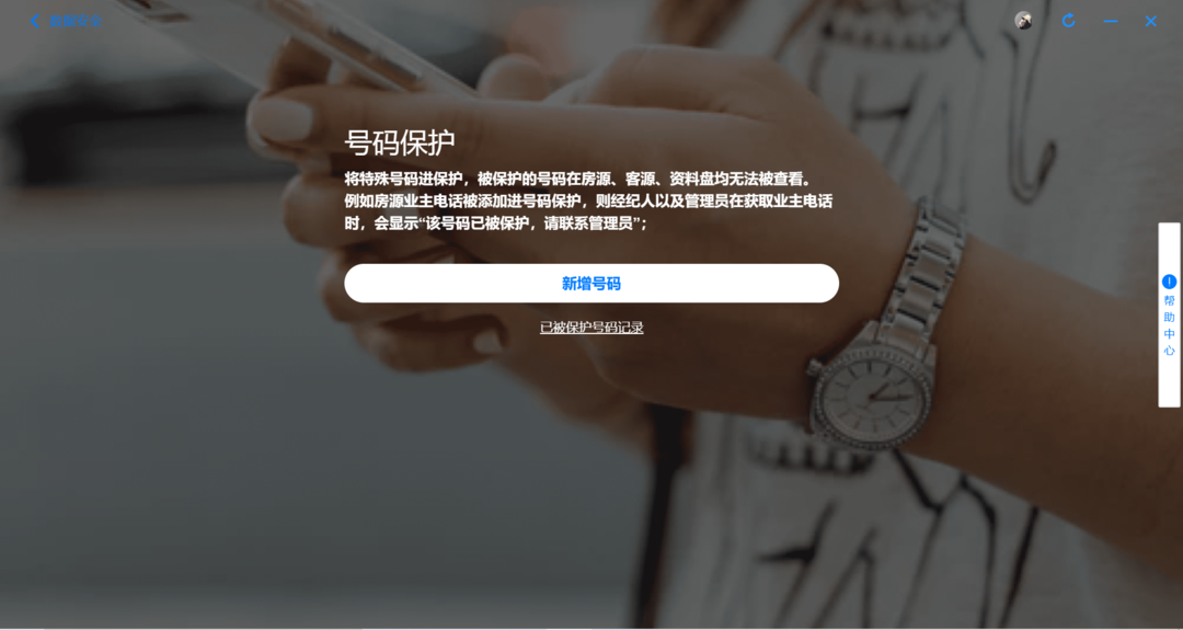管理员可对特殊号码进行保护,如独家房源业主的电话等,被保护后该号码在房源、客源、资料盘等均无法被其他人查看、获取,若经纪人想要查看则需要获得管理员的批准。该功能有利于管理者牢牢把控独家资源。