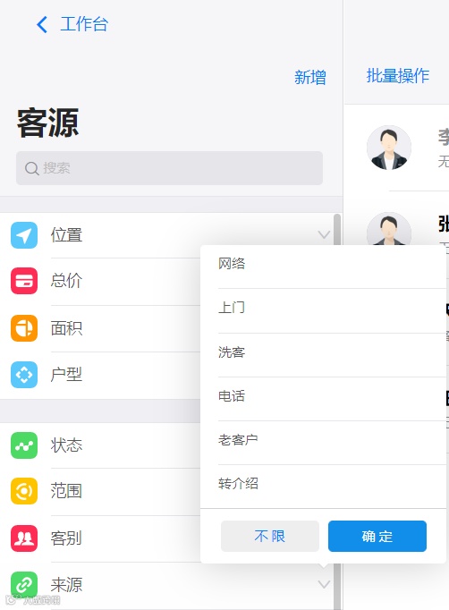 在房在线系统内,房源、客源、人员一站式管理。房源管理方面,可随时新增二手房、租房、新房,查看有效房源,房源维护人,房源钥匙人,批量管理房源;客源管理方面,录入求租求购客源信息,查看客源动态,分析客户源渠道(网络,洗客,转介绍等等);人员管理方面,一键新增组织架构,编辑人员信息,删减人员等操作。