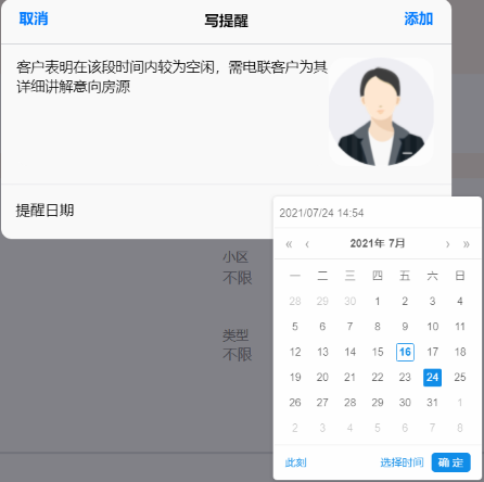 在房在线系统内,可写提醒,写跟进、录带看。经纪人是否有及时跟进客户,是否有带看房源,维护房源/客源状况如何,工作进展等等,管理者都能清楚明晰,并及时掌握经纪人工作进度,加强员工管理。