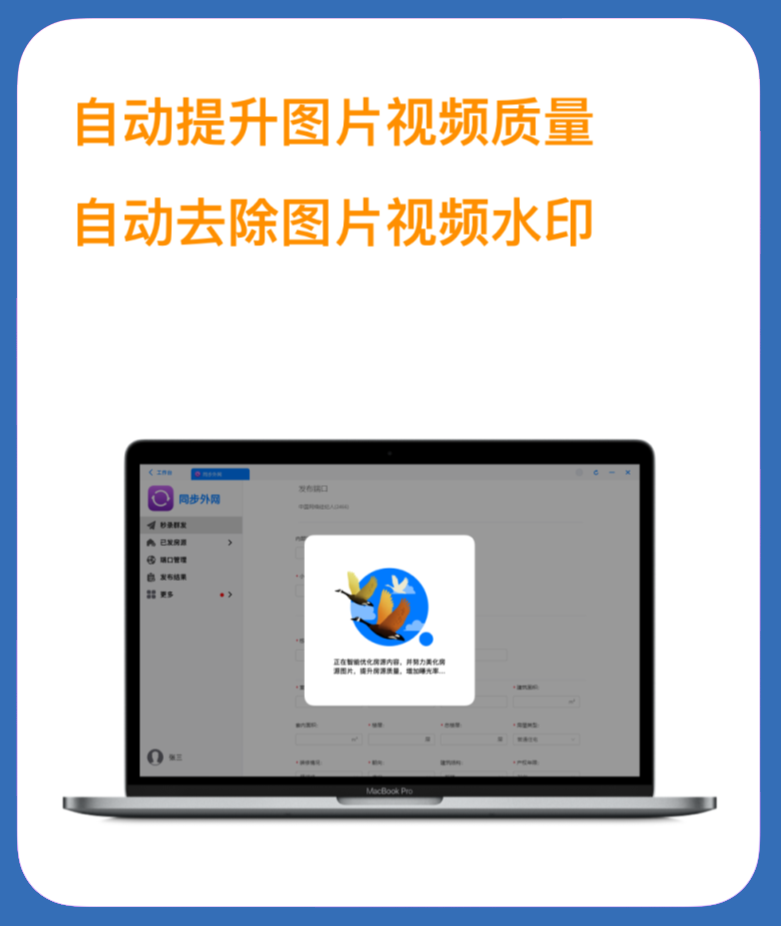 同步外网的功能能将要发布到外网的房源图片自动拉伸美化、自动去除水印;优化房源视频清晰度等,进一步提高房源优势。