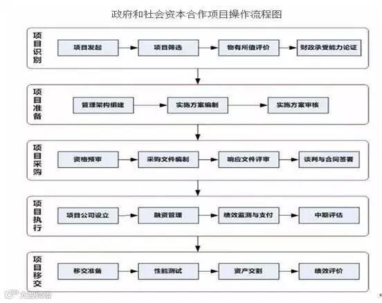 一个PPP项目需要经过5个步骤19项工作。5个步骤分别为:项目识别、项目准备、项目采购、项目执行和项目移交;19项目工作是:项目发起、项目筛选、物有所值评价、财政承受能力论证、管理架构组建、实施方案编制、实施方案审核、资格预审、采购文件编制、相应文件评审、谈判与合同签署、项目公司设立、融资管理、绩效监测与支付、中期评估、移交准备、性能测试、资产交割和绩效评价。