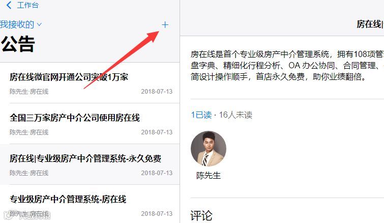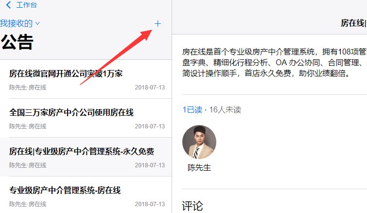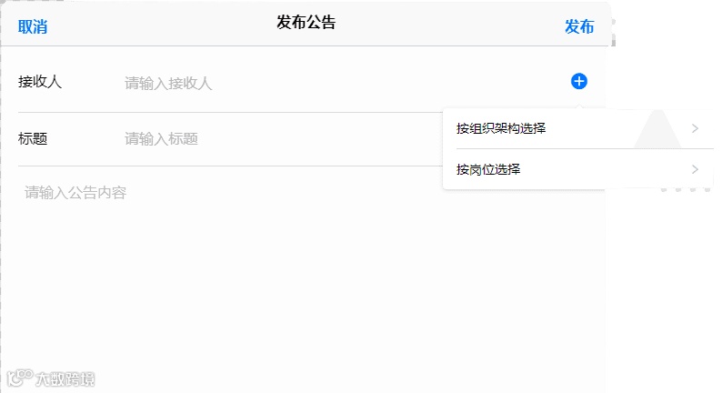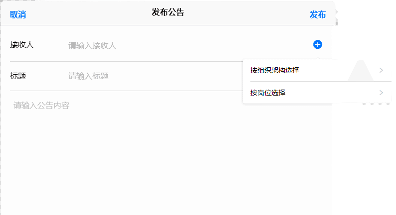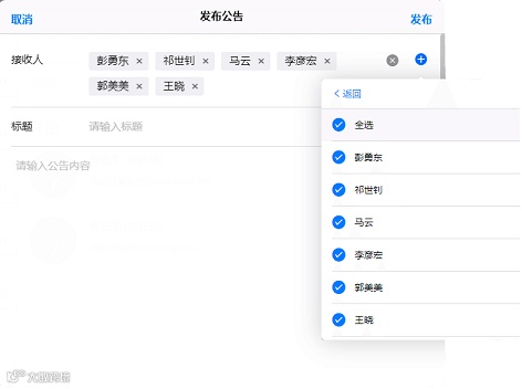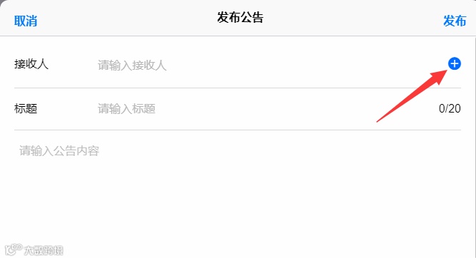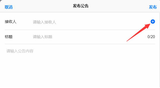那么,如何发布公告呢?点击“+”按钮—选择接收人—发布
