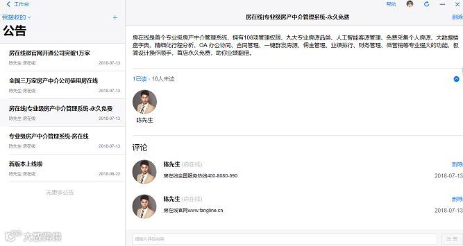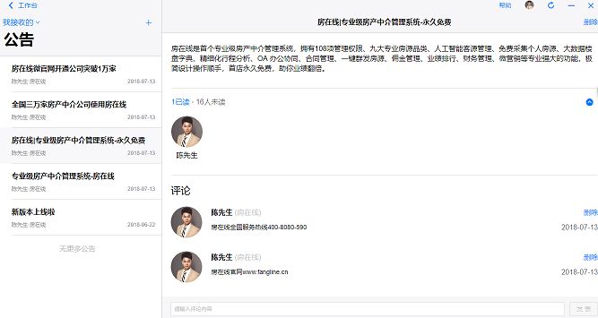 公告下面附带评论功能,你可以在下面评论你的想法和疑问,同时提高了员工之间的互动率。