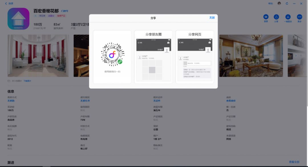 现在,如果你是微官网用户,当你需要在房在线ERP内把房源分享给好友时,扫一扫后,会自动跳转到你公司的微官网小程序。