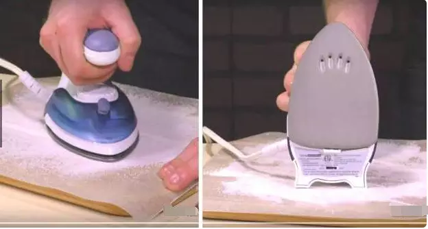 ▼6. 清洁熨斗的话,只要在木板上放一层羊皮纸,撒上盐后开启熨斗,让两者受热一分钟即可。