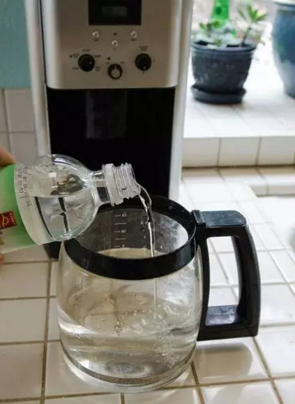 ▼3. 咖啡机的清理也是相同原理,加入等量的水和白醋,打开后煮到一半关掉,继续重复这个过程就可以清干净啰。