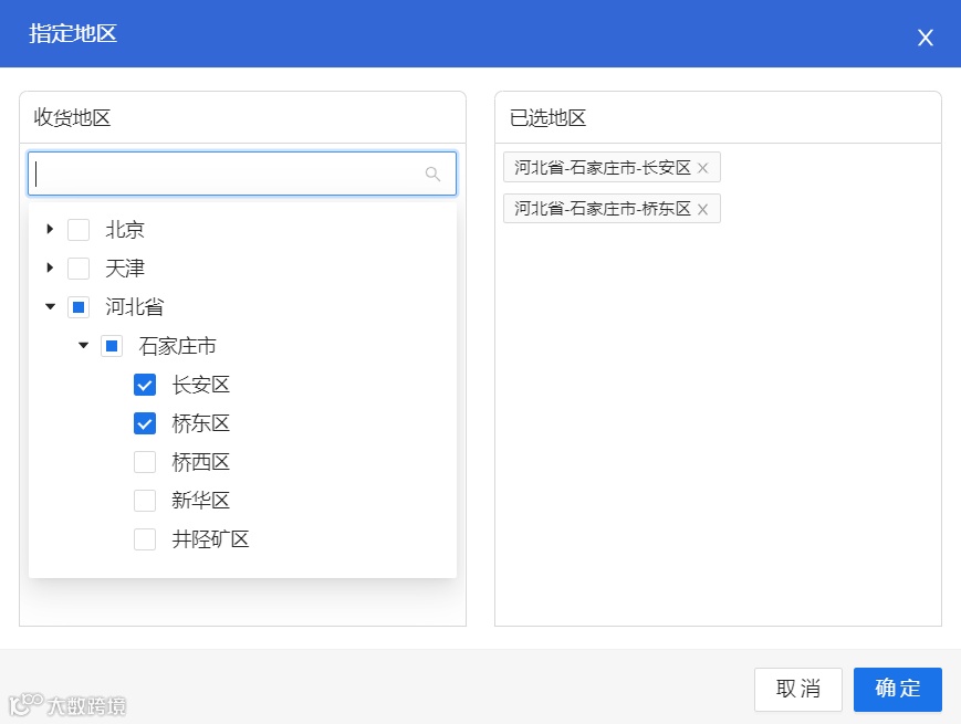 在地区选择中,除了省市外,新增了市级行政区的选择,点击添加到右侧已选地区
