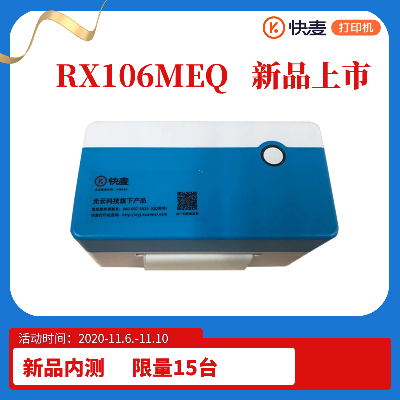 这次带来的是我们的新品RX106MEQ,一款小巧的面单打印机。既能打印面单、又能打印标签。