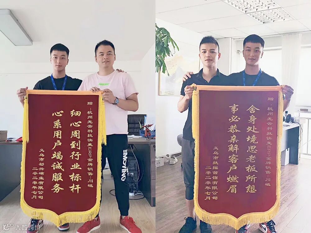 为了庆祝川砥此次的晋升,两位老板一起制作了“细心周到行业标杆,心系用户竭诚服务”和“舍身处境思老板所想,事必恭亲解客户燃眉”两面锦旗送给川砥,锦旗上的话字少情深,完美概括了川砥的销售风格,想老板所想,细心周到,竭诚服务。