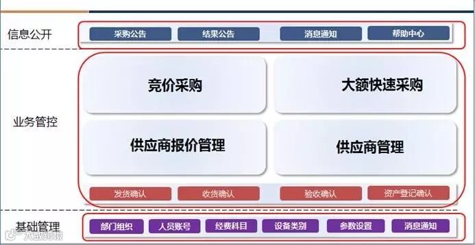 2015年1月,高校网上竞价采购平台提升服务体系,优化系统架构,研发服务高校的综合信息模块,拓展升级为综合采购平台。