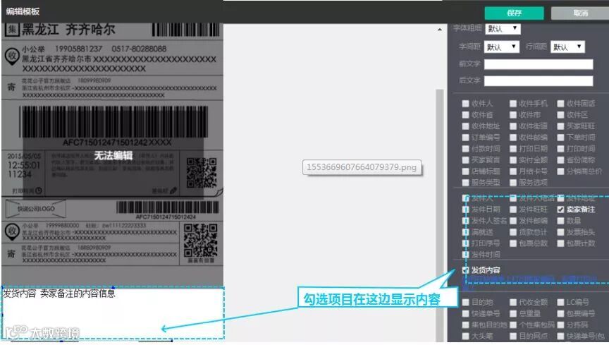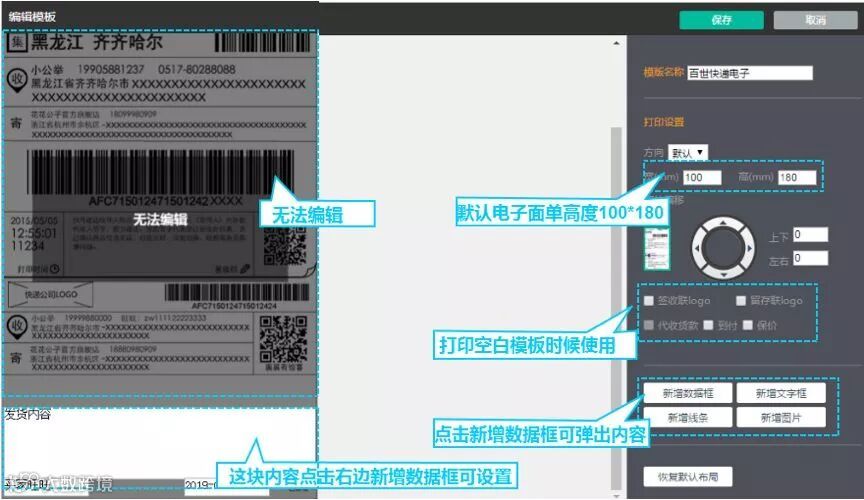 Q:我想要修改快递单模板/新增快递模板/增加备注内容