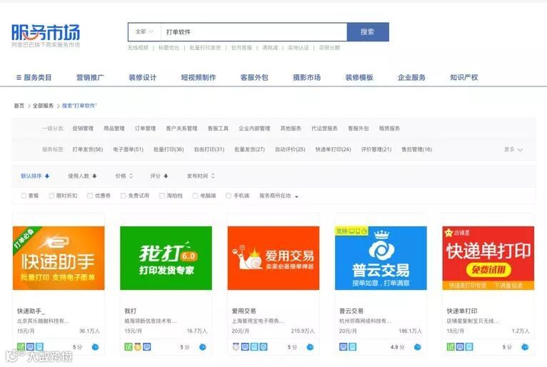 打单软件一般都是客户从服务市场中自主选购的,一般是15-20一个月。您有需要可以电脑端登陆网址https://fuwu.taobao.com/,搜索打单软件进行挑选和购买。