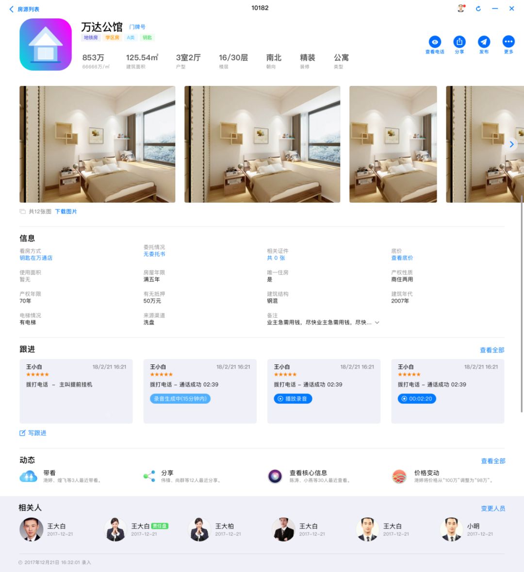 系统在每次语音跟进后,都将自动生成语音跟进,杜绝虚假跟进。公司成员可以在最近跟进中听取录音,你可以跟踪经纪人话术,优化提升整体效益。