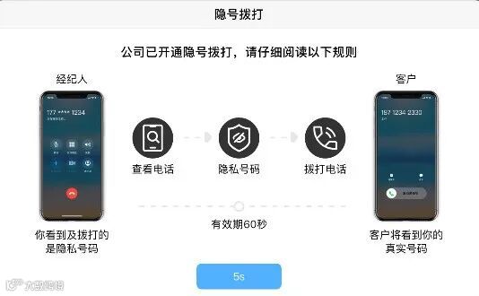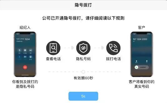 当你开启隐号拨打时,客户看到的将是房产经纪人的真实号码,而房产经纪人看到则是虚拟号码!