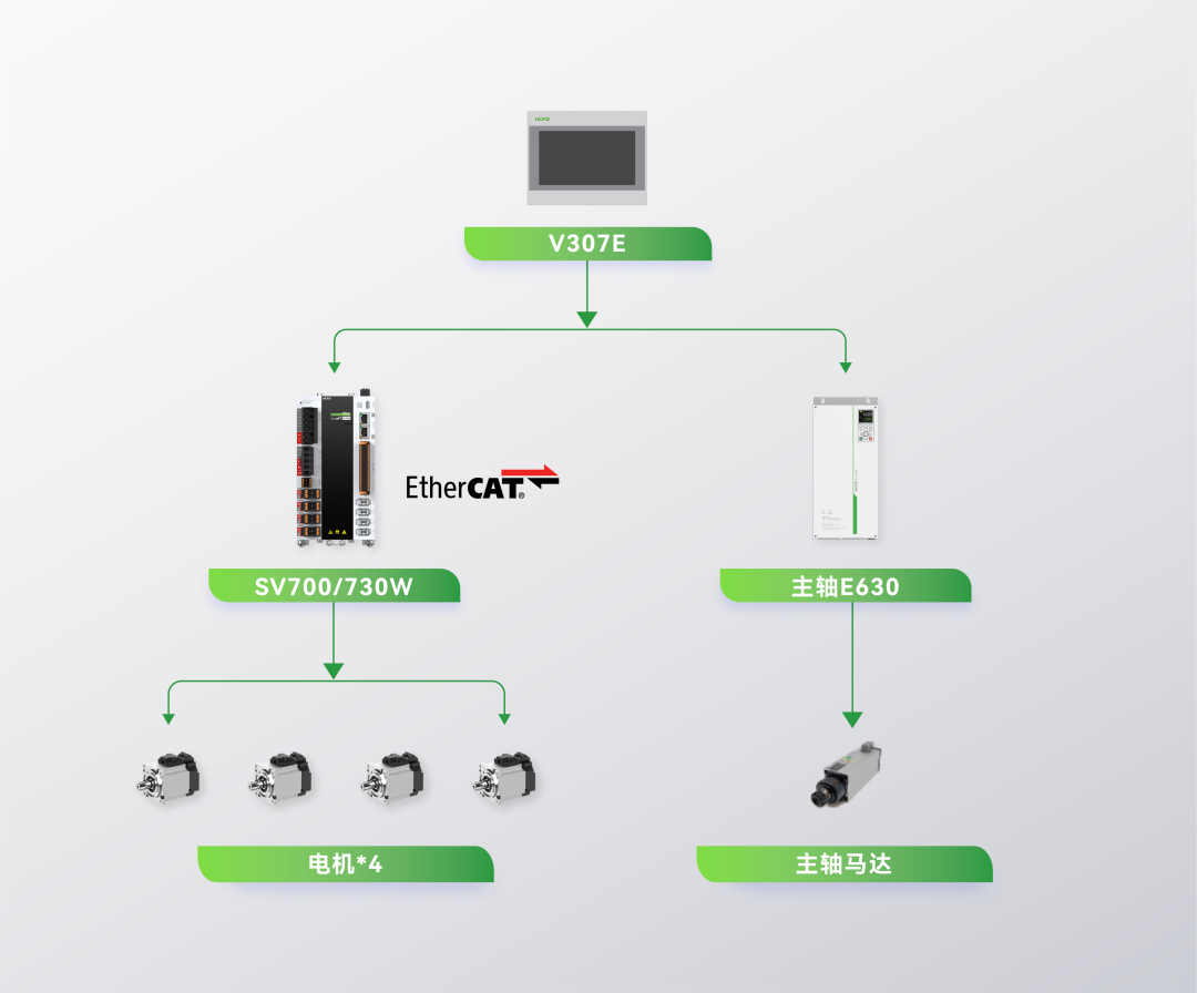 系统搭配730W伺服,定位精度高、响应快、刚性好、抗干扰能力强。伺服电机可靠性高,使用寿命长。