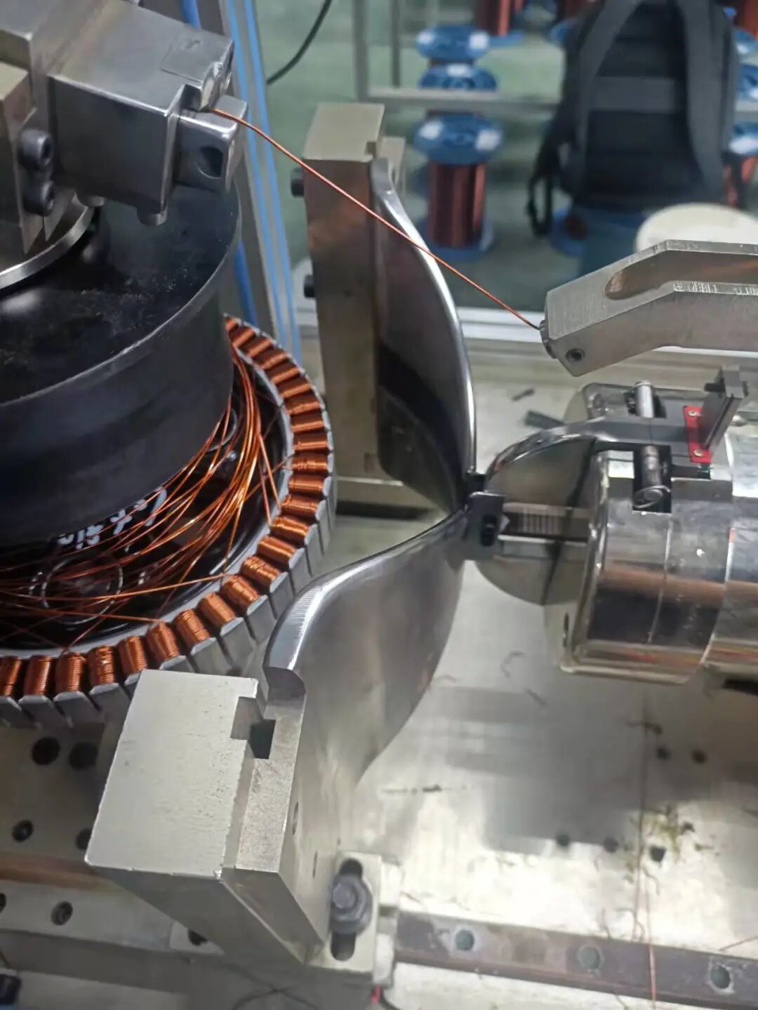 外绕机分为单头和双头两种,主要用于将铜线规则地绕在轮毂电机的定子上,其工作稳定性会影响产出轮毂电机的品质,绕线不当会导致电机通过的电流过小或过大,影响设备正常运行。