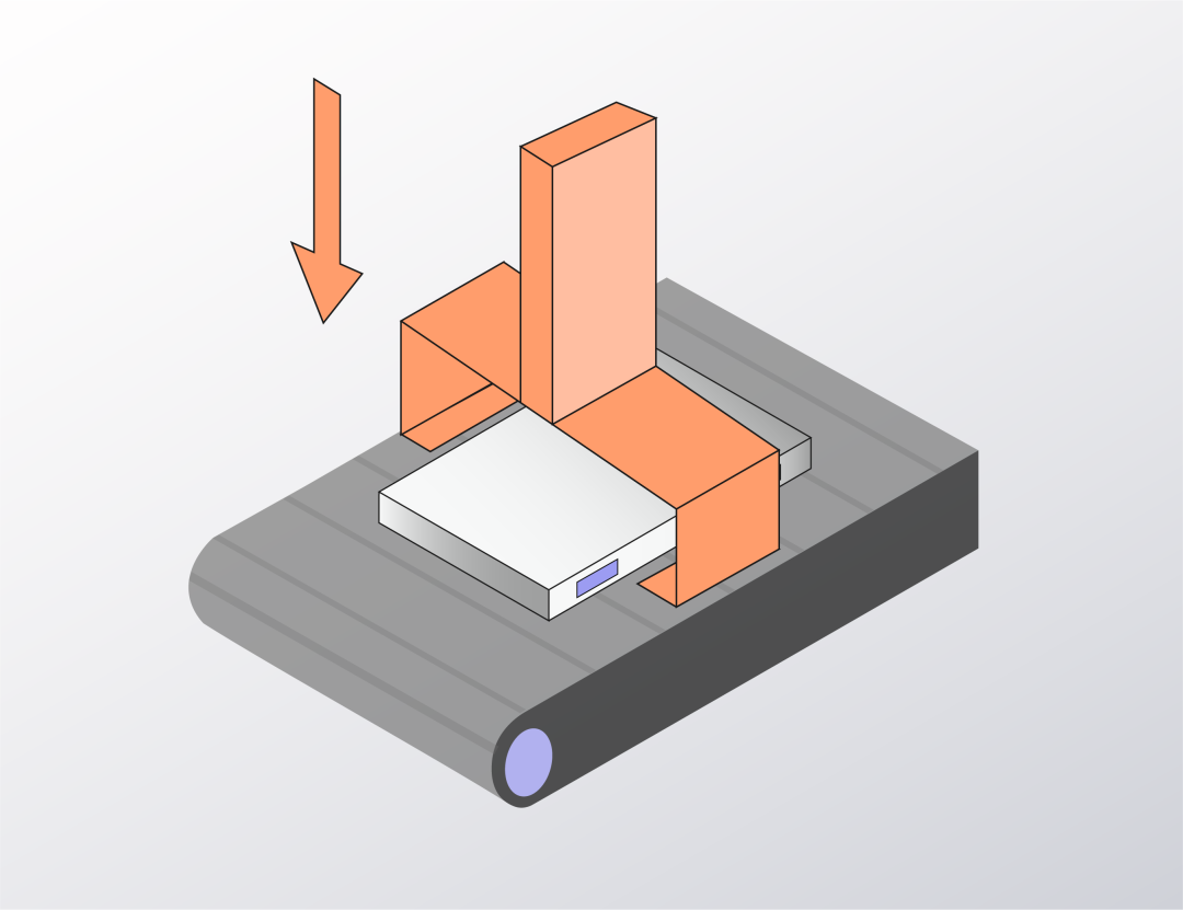 折侧边滚筒把侧边蓝膜滚平完成第4面包覆。
