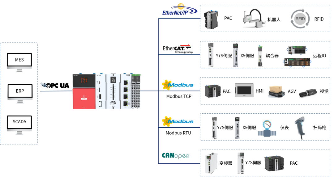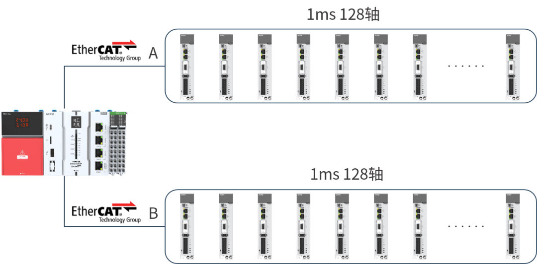 可实现[1*EtherCAT+3*EtherNet]或[2*EtherCAT+2*EtherNet]