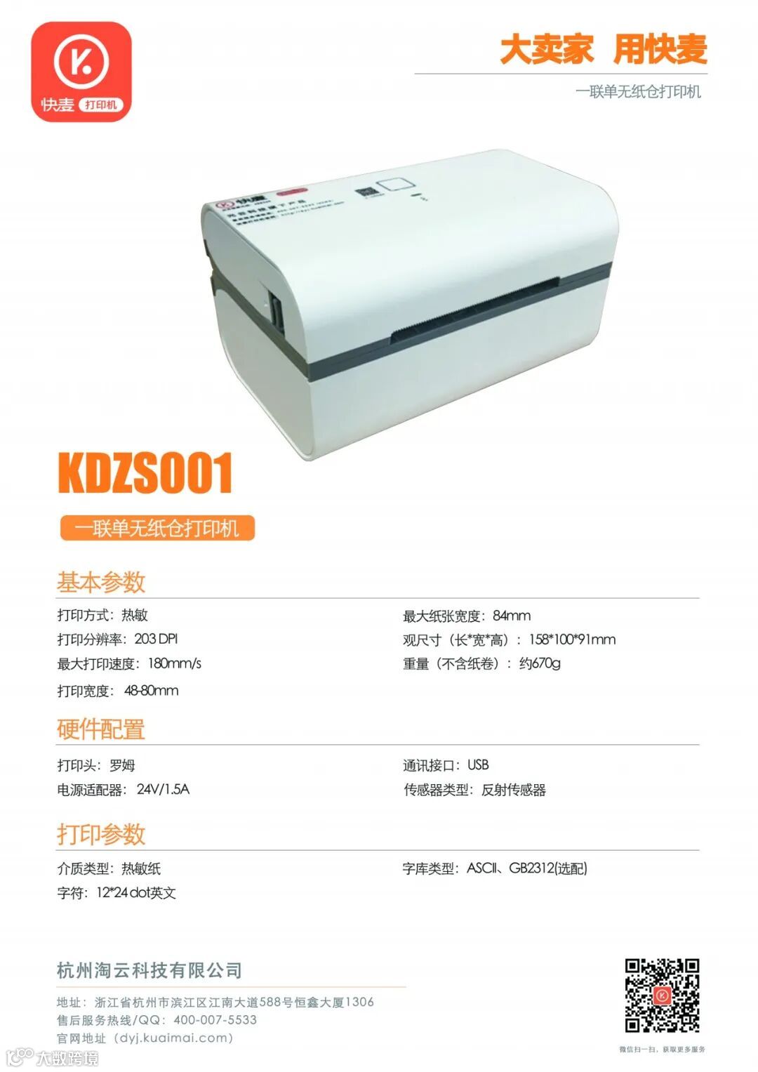 KDZS001也是一联单的无纸仓打印机,采用进口的罗姆打印头,速度高达180mm/s,一分钟80单;再配合快递助手打单软件,称得上是电商卖家的王炸组合!