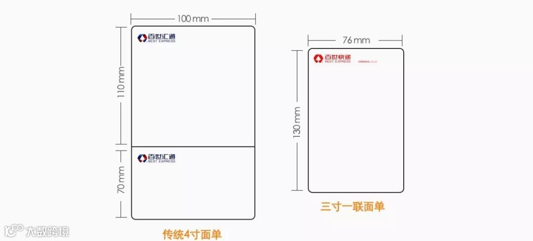 相比传统的二联快递面单尺寸为100mm*180mm,新版的快递一联面单尺寸仅为76mm*130mm。面单变小,节约纸张,打印速度更快。