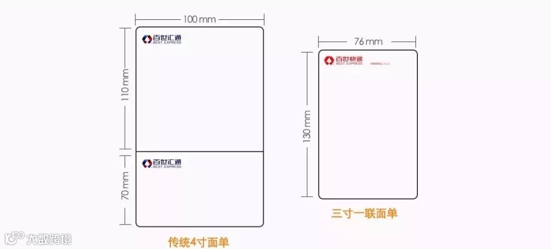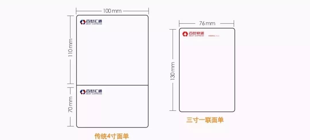 首先我们先来全面解读下全新的3寸面单。传统的4寸面单尺寸为100mm*180mm,新版的3寸面单尺寸仅为76mm*130mm。