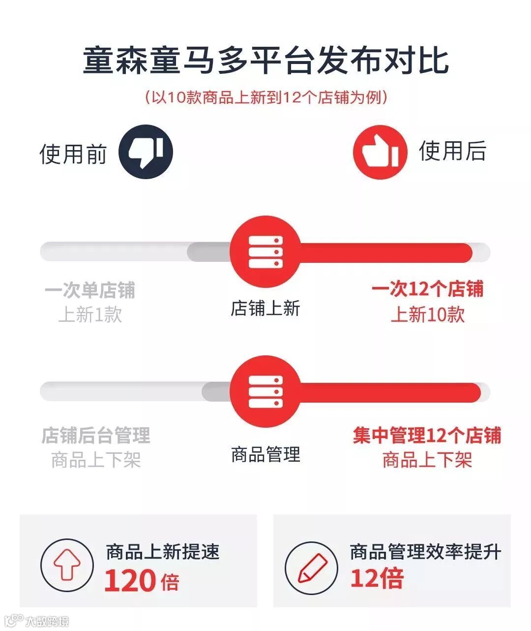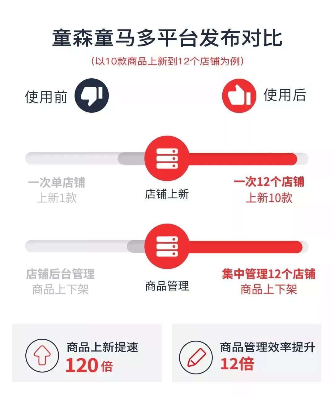 18年10月起,童森童马旗下5个品牌12家店铺的所有详情页均由快麦详情机器人制作而成,并且通过快麦详情机器人上新至各个平台的不同店铺。截止目前,已经累计完成近1500款详情页制作和5000多款商品上新,实现团队高效配合。