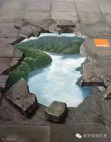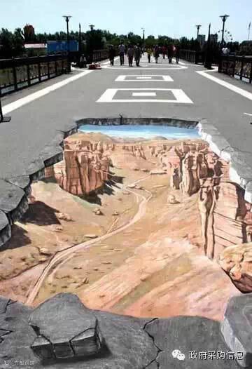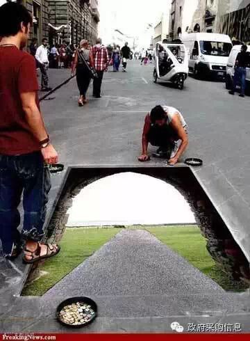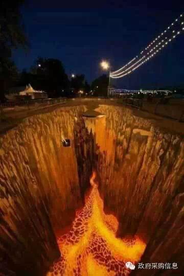 在街头绘制的这种3D画,水平达到一定程度,能够以假乱真,让人大吃一惊!比如下面这些作品,不看看清楚,还真不敢走上前去。