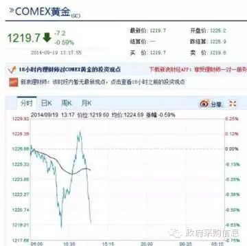据新浪财经讯 北京9月19日下午消息 苏格兰独立公投结束,决定留在英国,黄金(1222.40, -4.50, -0.37%)迅速大跌近0.6%,下跌7.2美元,报1219.7美元。