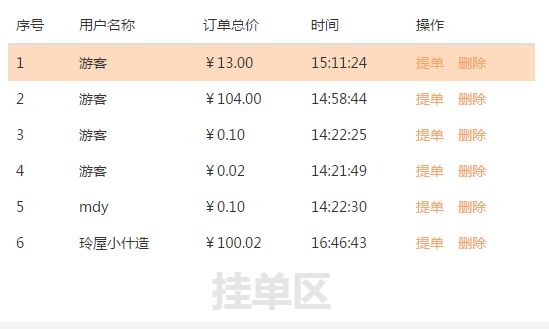 挂单是指顾客因某些原因暂时不付款,先挂单,后续在进行付款(比如先体验、后付款等消费场景)。店员选择挂单之后,顾客的收款信息将出现在“挂单区”。待顾客付款时,店员点击“提单”,即可继续进行收款。